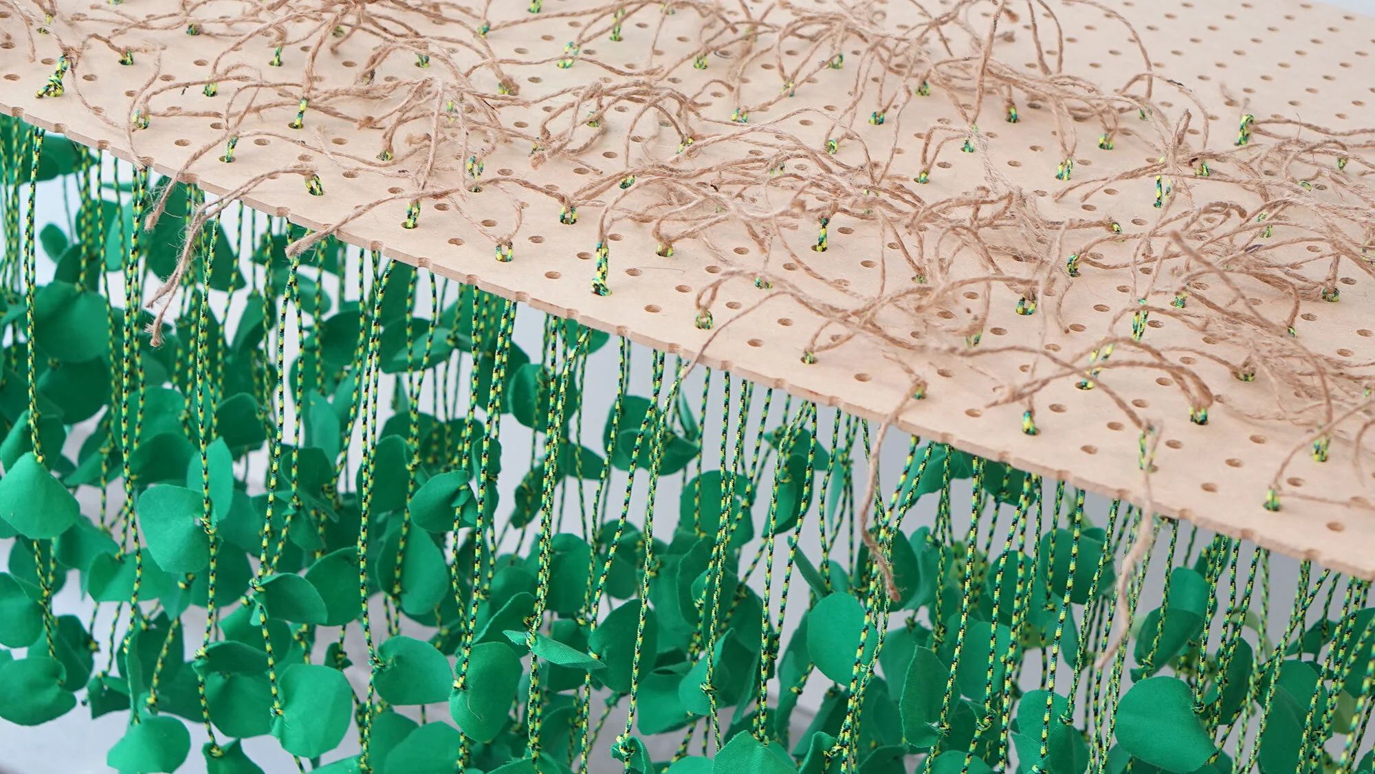 1200 yarn stalks. 3500 individual cloth petals. 1152 hand-drilled holes.